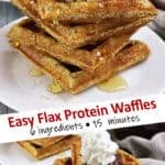 Start your weekend with these healthier Flax Protein Waffles! Made with just 6 ingredients and zero flour or butter, they are the perfect protein-packed base for your favorite toppings.